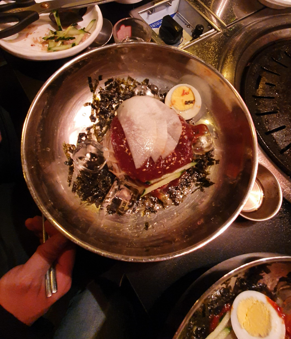 난생 처음 느껴보는 숙성삼겹살의 풍미에 냉면의 맛을 잊은지가 오래다. 보통 냉면으로 입가심을 하는데 입안에 남아있는 삼겹살맛이 냉면으로 씻어내는 느낌이 기분이 나쁠정도??
