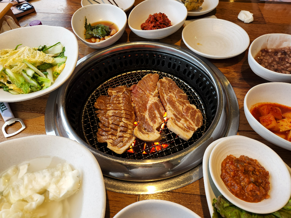 드디어 고기를 굽기 시작. 그런데 친절한 아주머니께서 직접 고수의 손길로 구워주신다.
