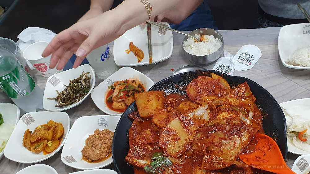특히 왼쪽에보이는 명란젓 비스무레 하게 생긴 반찬이 내 입맛에는 일품이였다. 같이 간 일행중 내앞자리에 앉은친구가 명란젓을 좋아하지 않아 혼자 독식하는 행복을 누렸다.