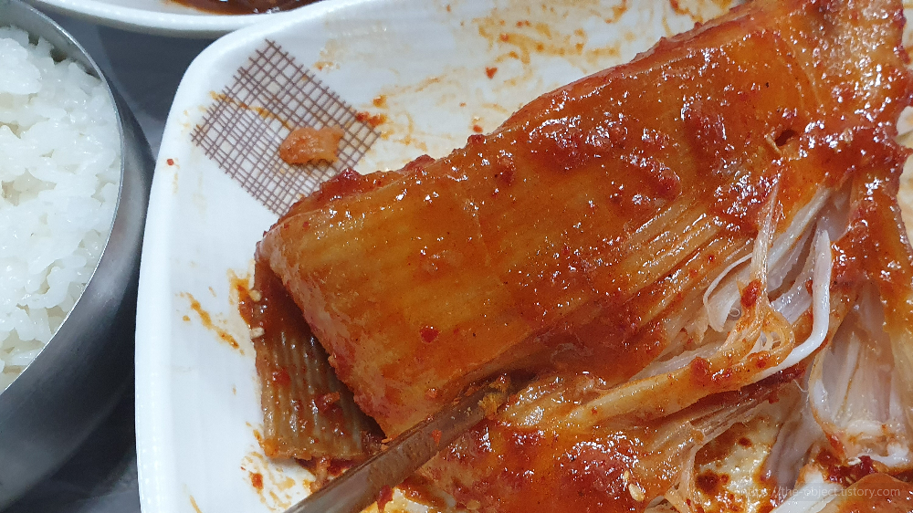 가자미찜은 뼈째 오돌오돌 씹어먹는 맛이 일품이다. 요리를 잘못하면 자칫 뼈가 단단해서 씹어먹지 못하는 경우가 생기는데 여기는 요리를 잘하는 편이라 아주 맛있는 식감이였다.