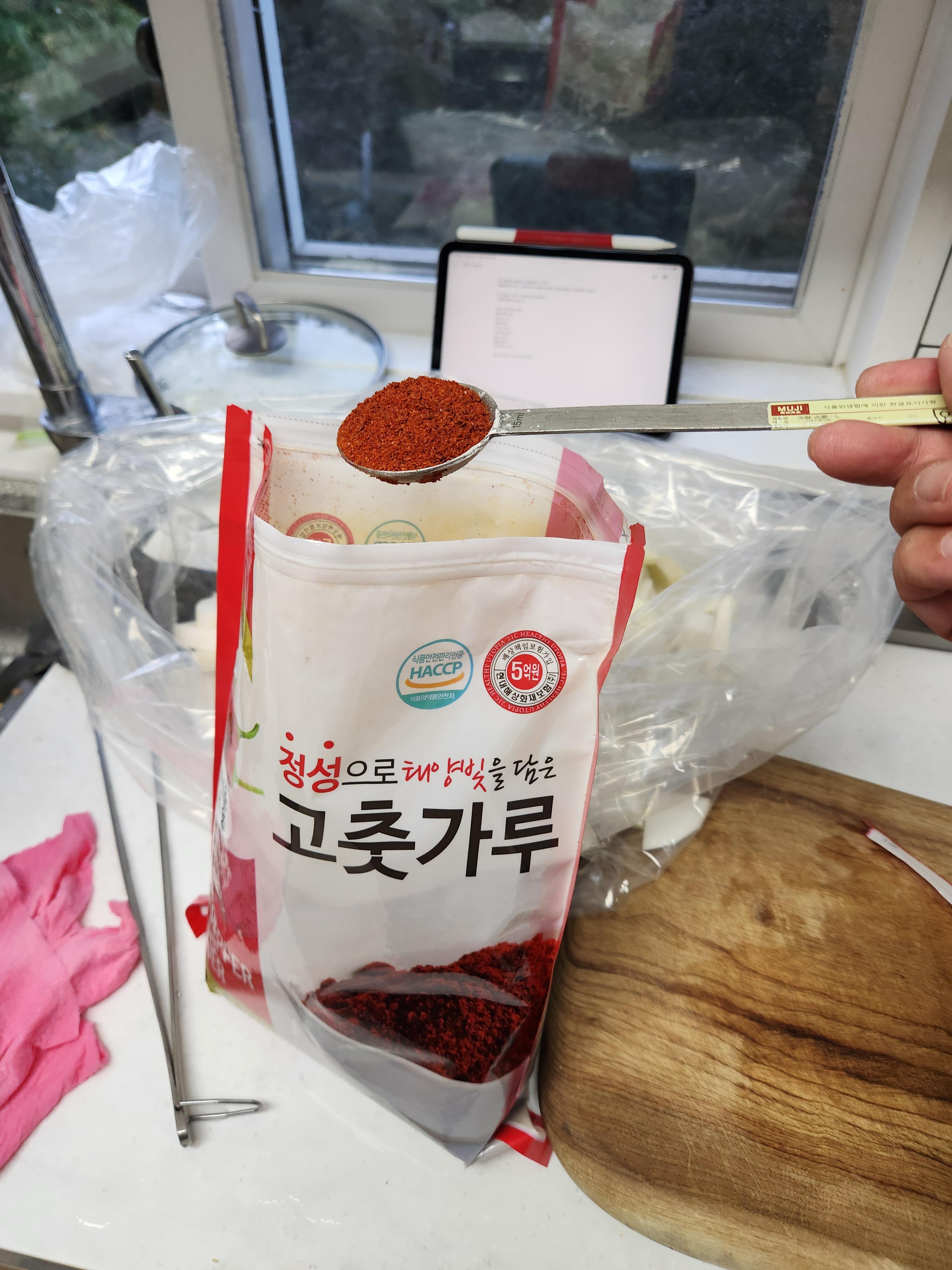 굵은 고춧가루와 멸치액젓, 설탕, 마늘, 소금 등 갖은 양념을 넣어주었다.