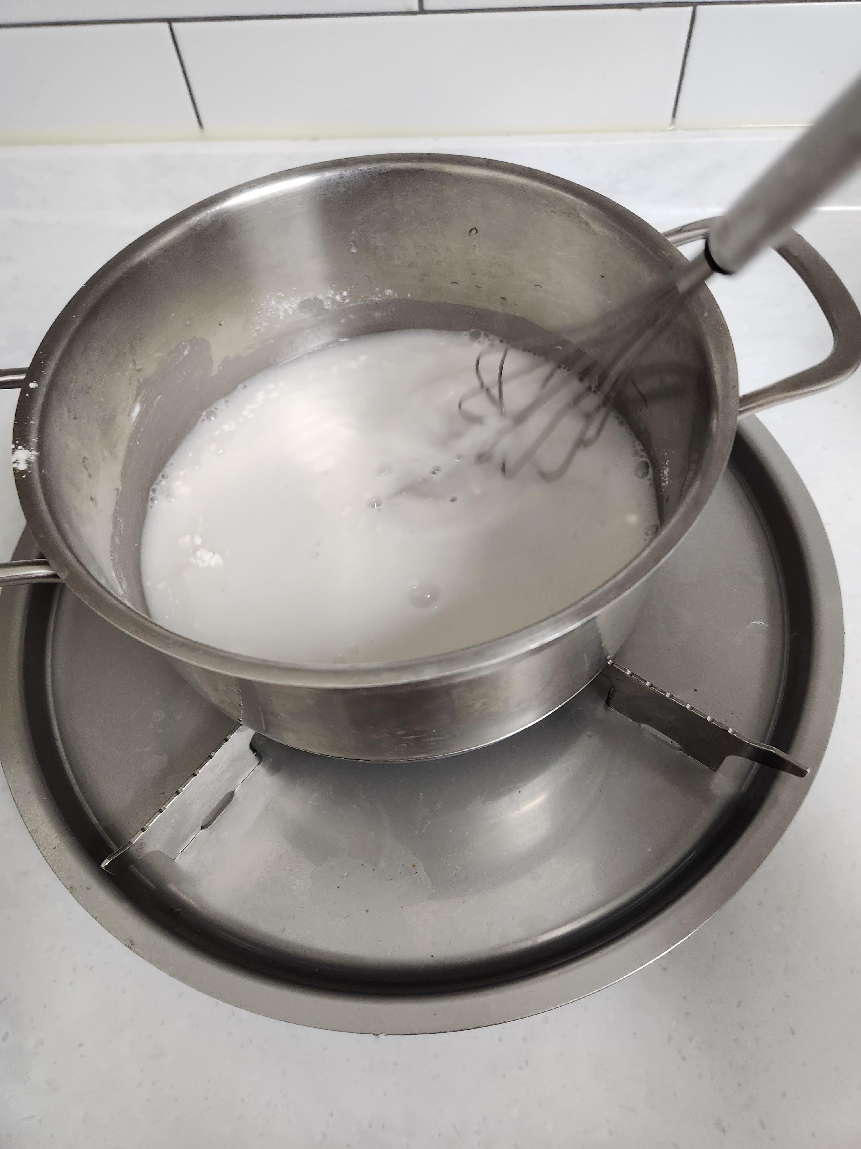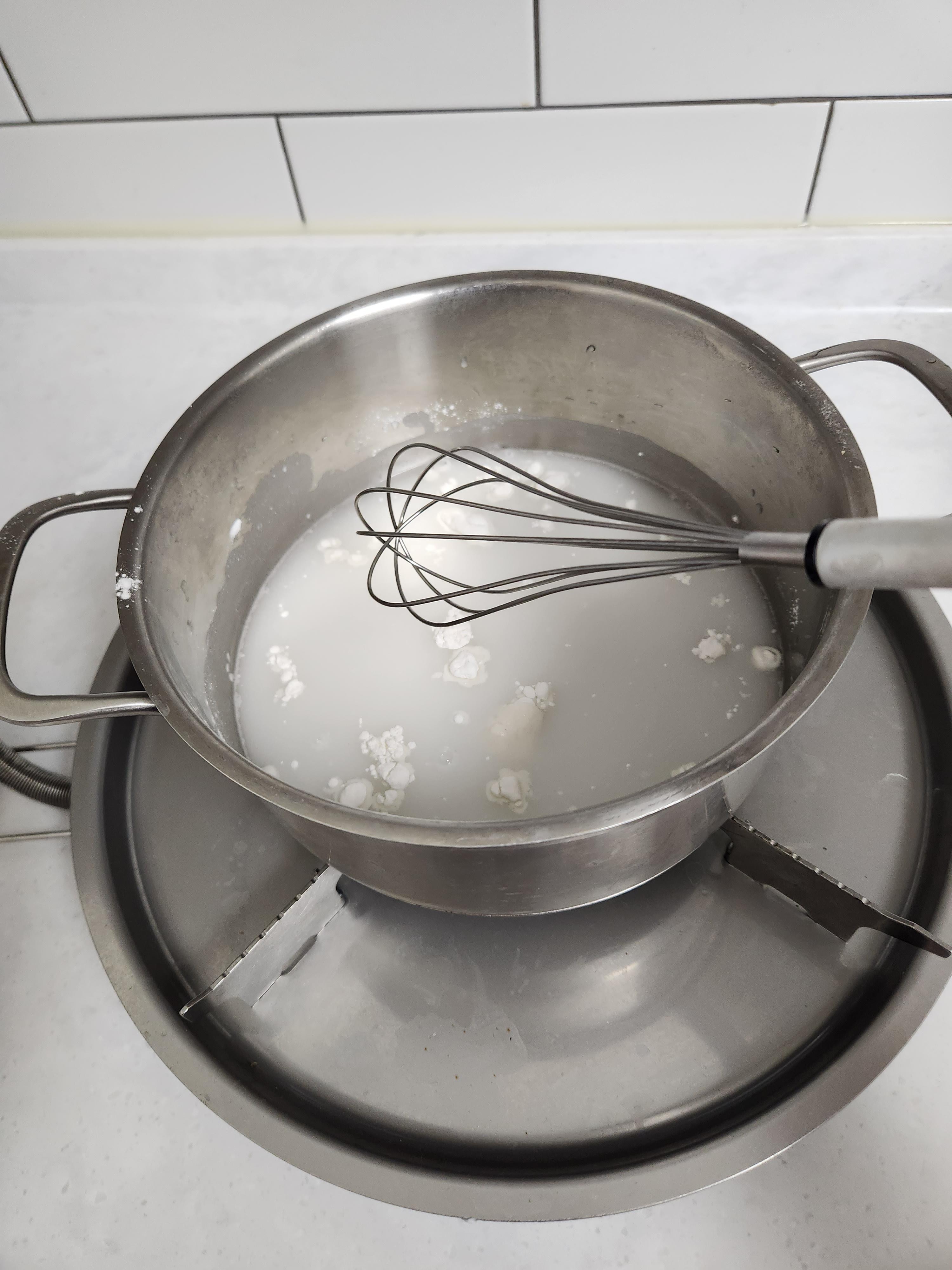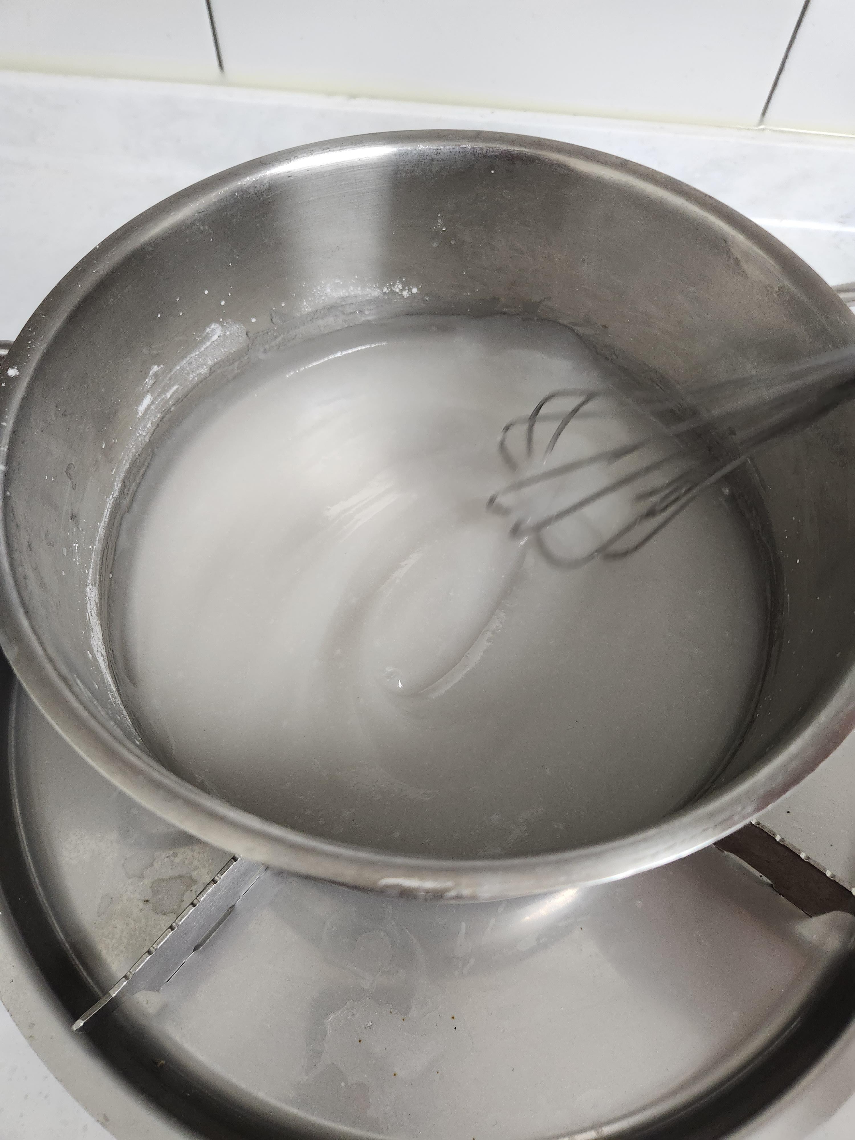 먼저 찹쌀풀을 만들었다. 아하부장님의 조언에 따라 물을 한컵 붓고 찹쌀가루를 넣었다.