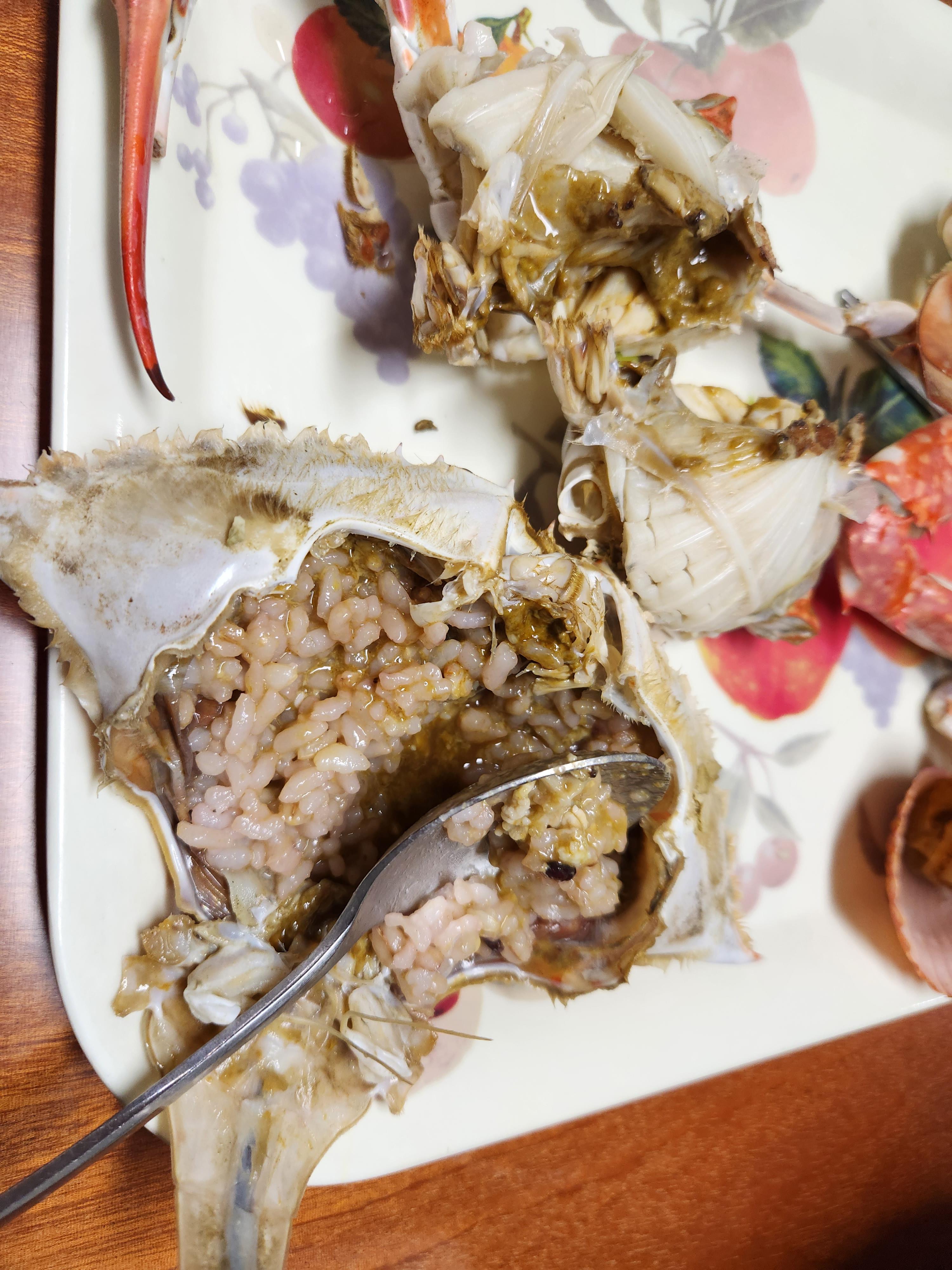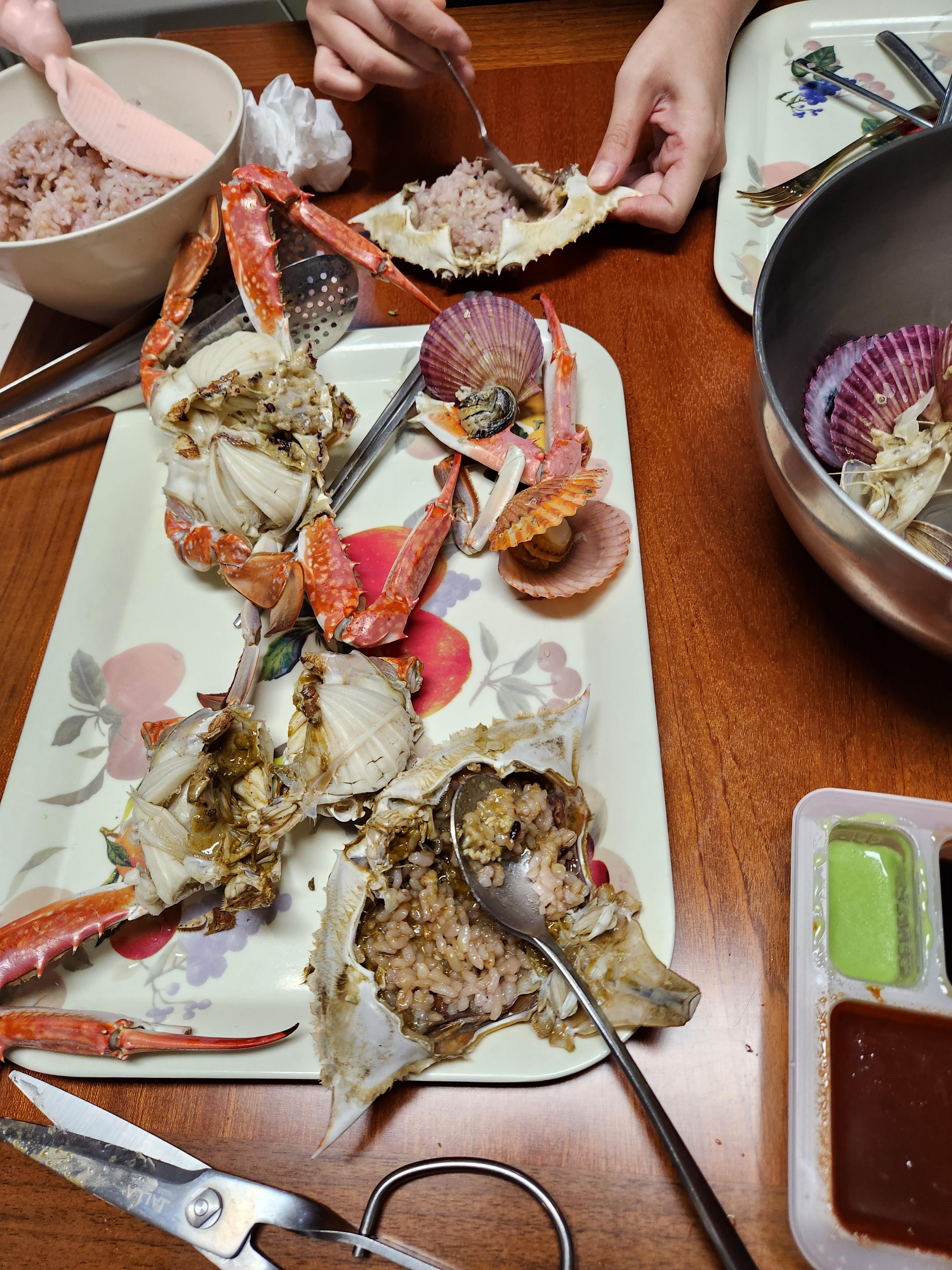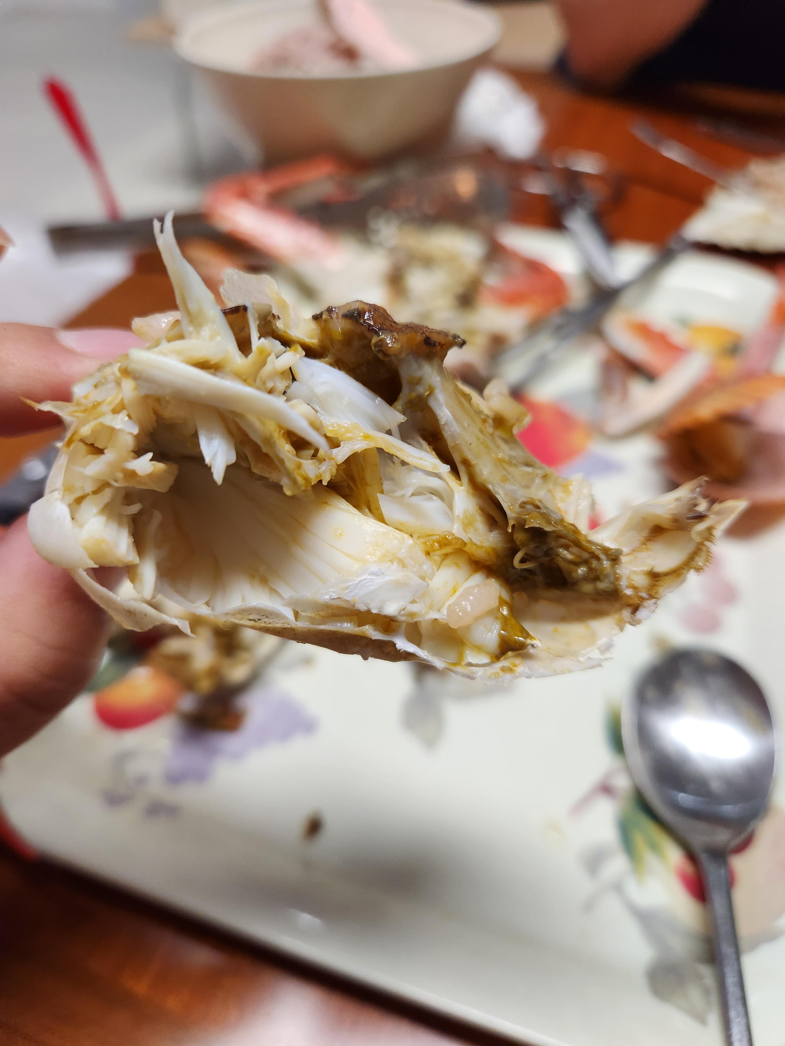 가게에서 삶아서 왔더니 물이 없는 게딱지도 있었다. 뒤집어서 삶아달라고 미리 말했어야 했는데...