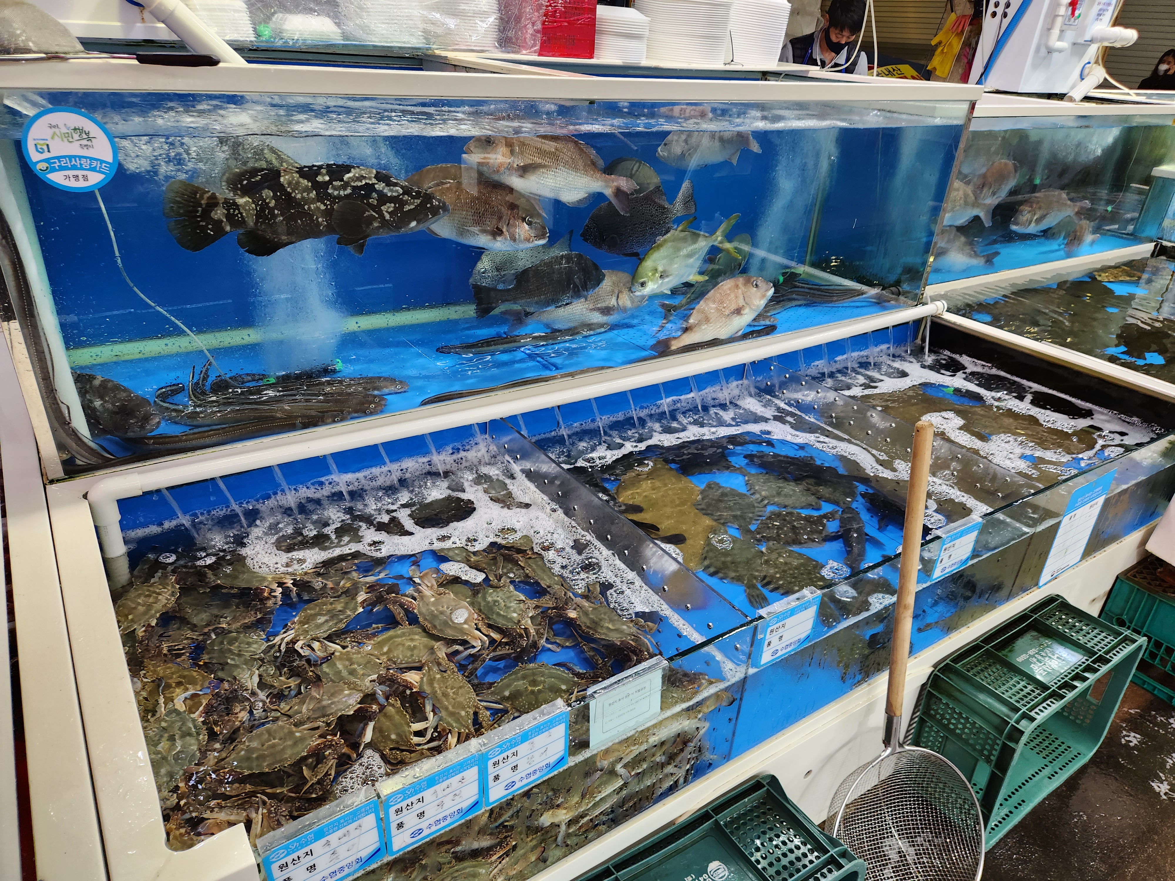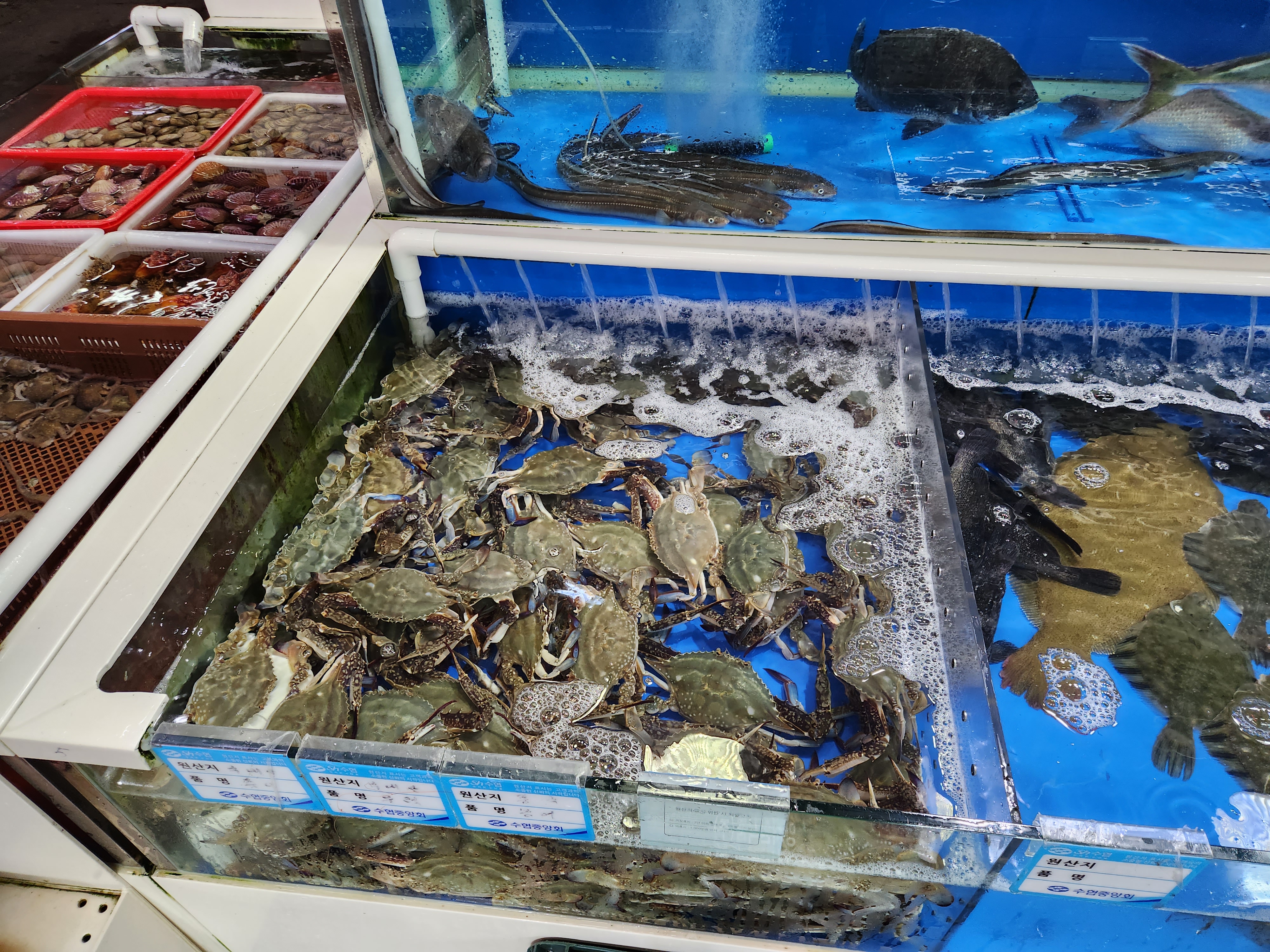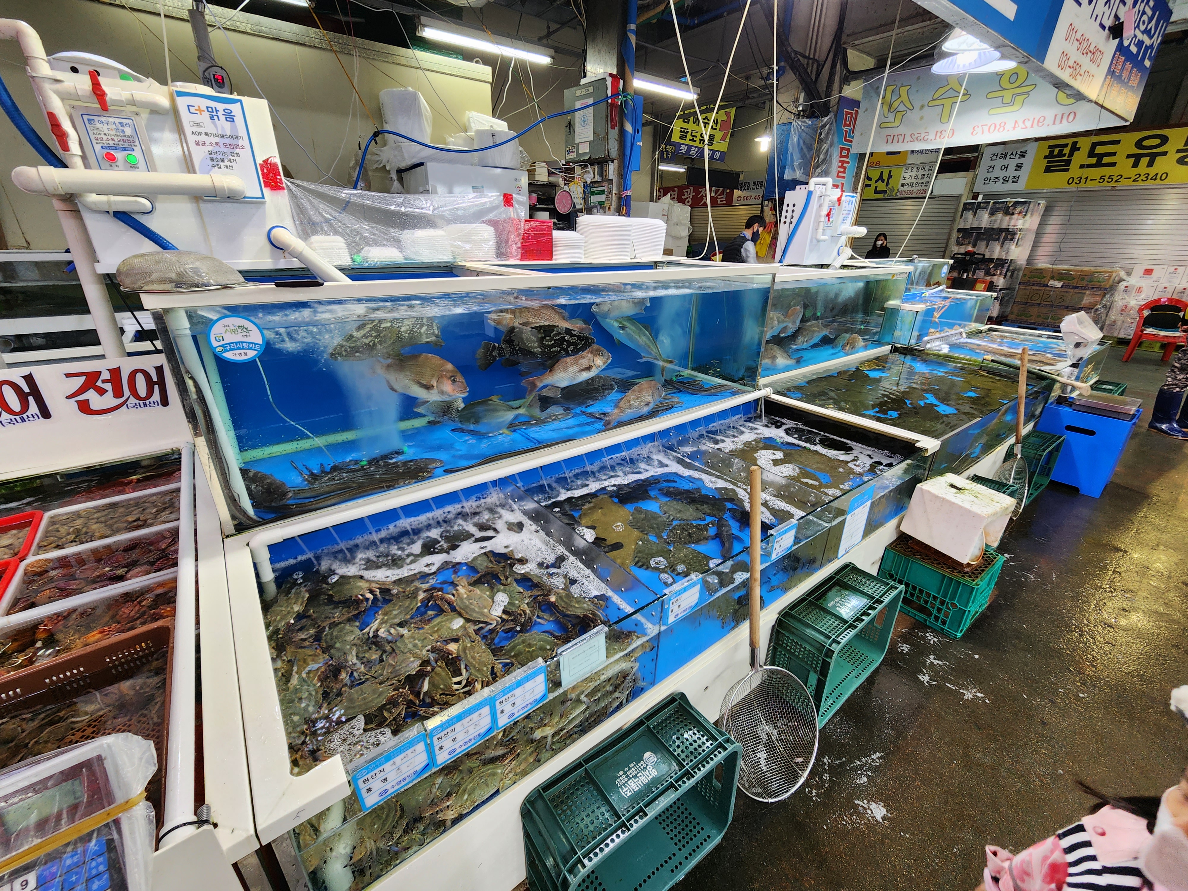 싱싱한 해산물을 구경하니 아이가 엄청 좋아한다.