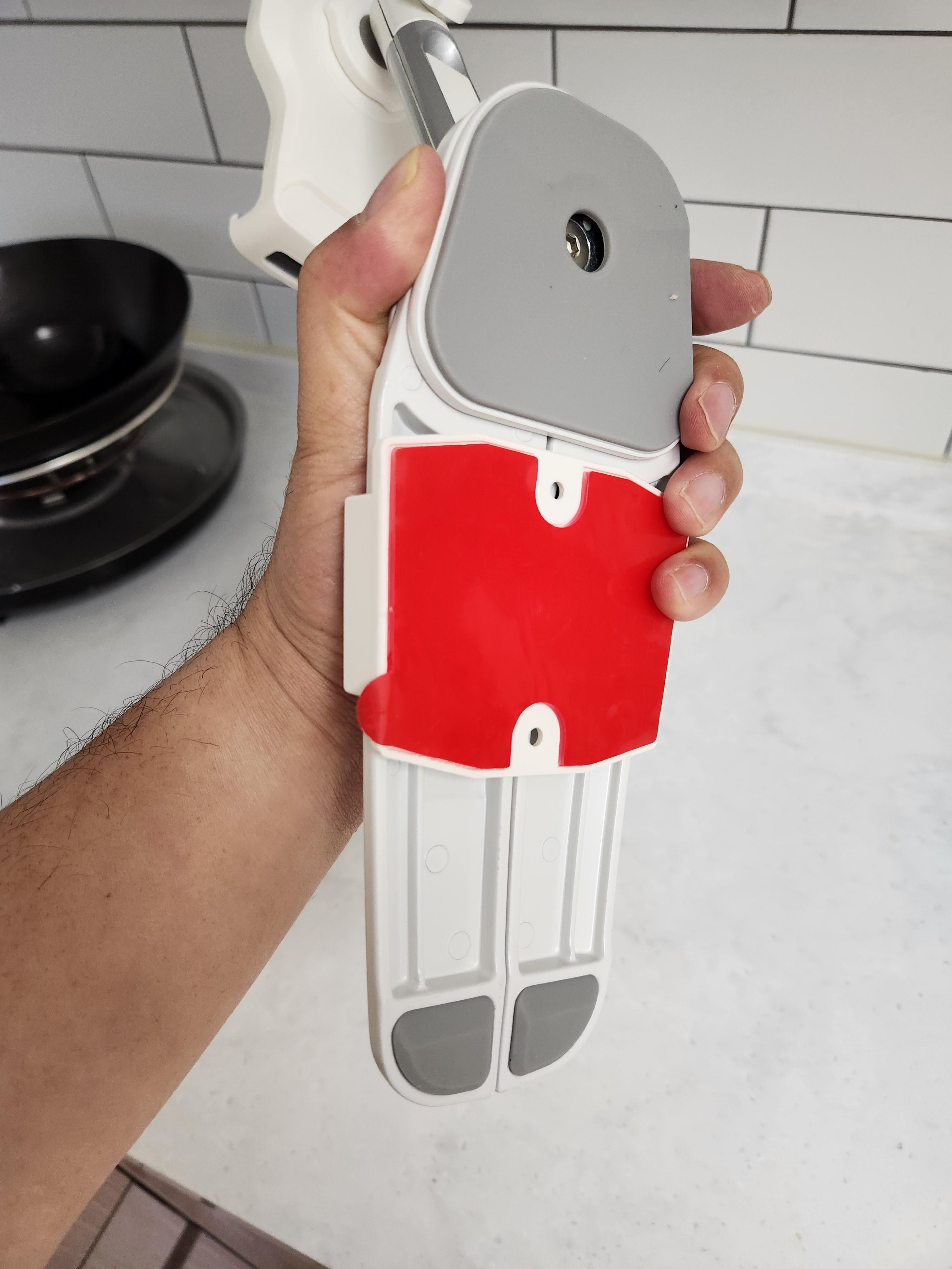 발을 모아준다음 부속품에 딱 끼우면 벽에 붙일수 있다.