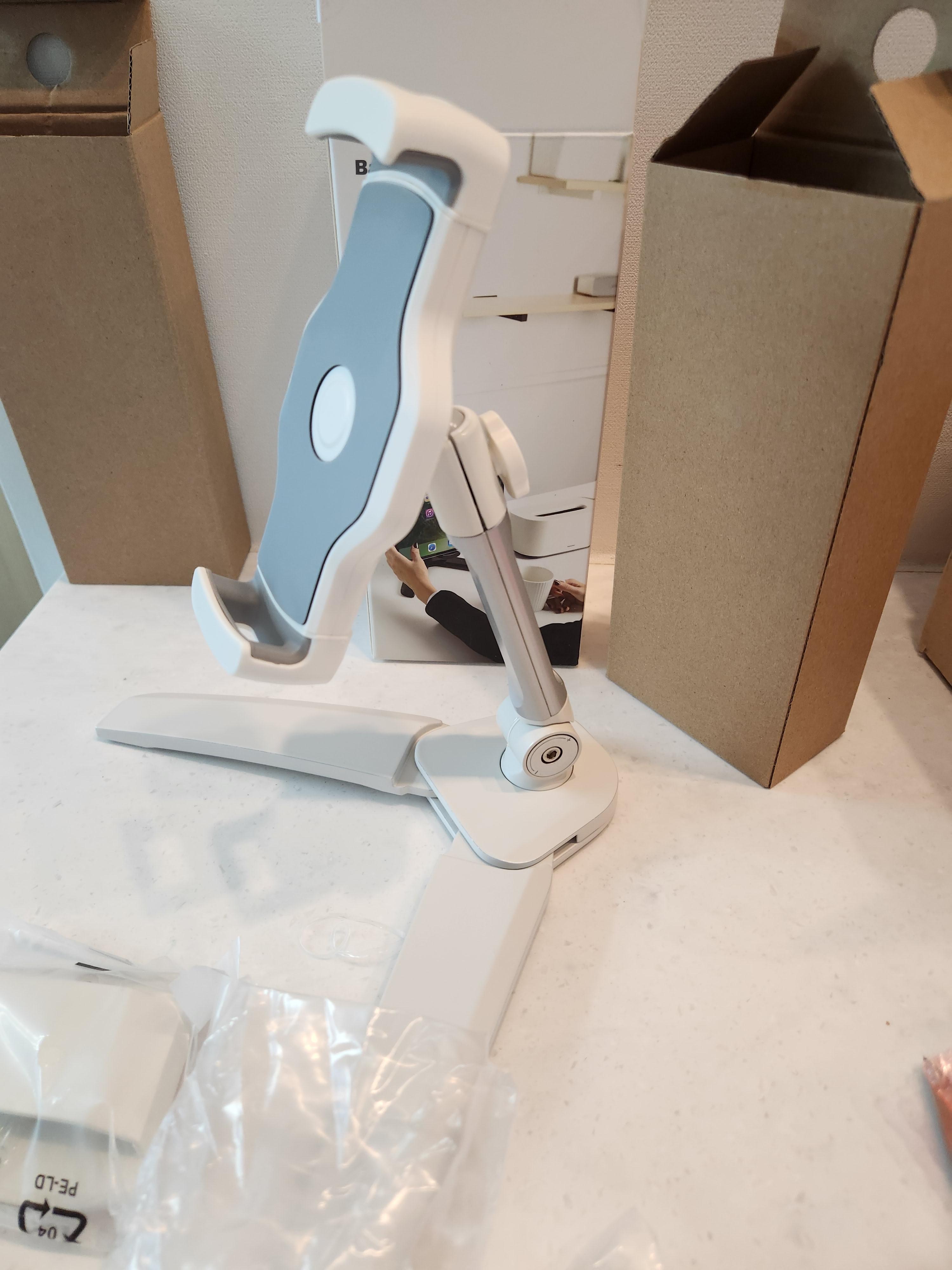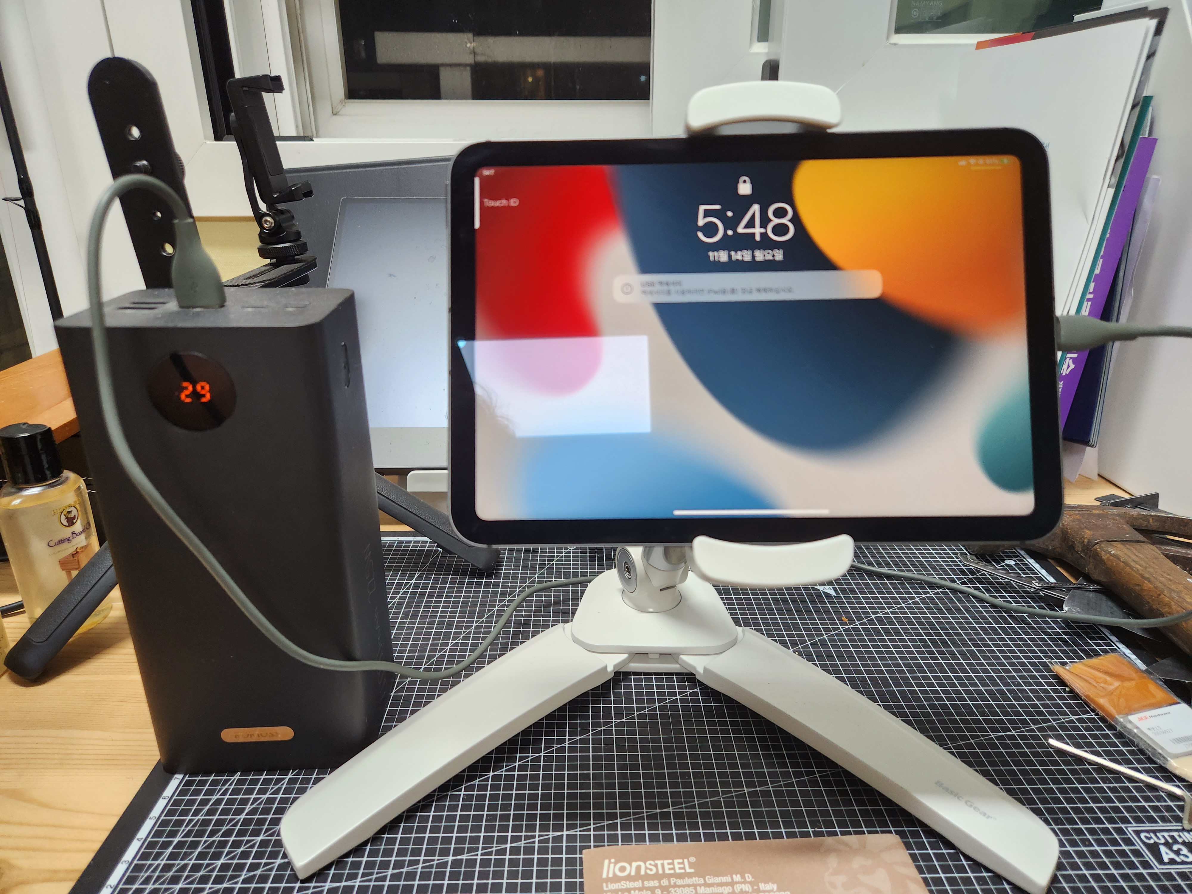 옆자리에 앉은 사람이 핸드폰 거치대를 사용하는 모습을 보고 나도 저런거 하나 있었으면 좋겠다.. 생각하다가 검색하여 아이패드 미니를 함께 사용하기위해 아애패드 겸용 거치대를 구매하였다.