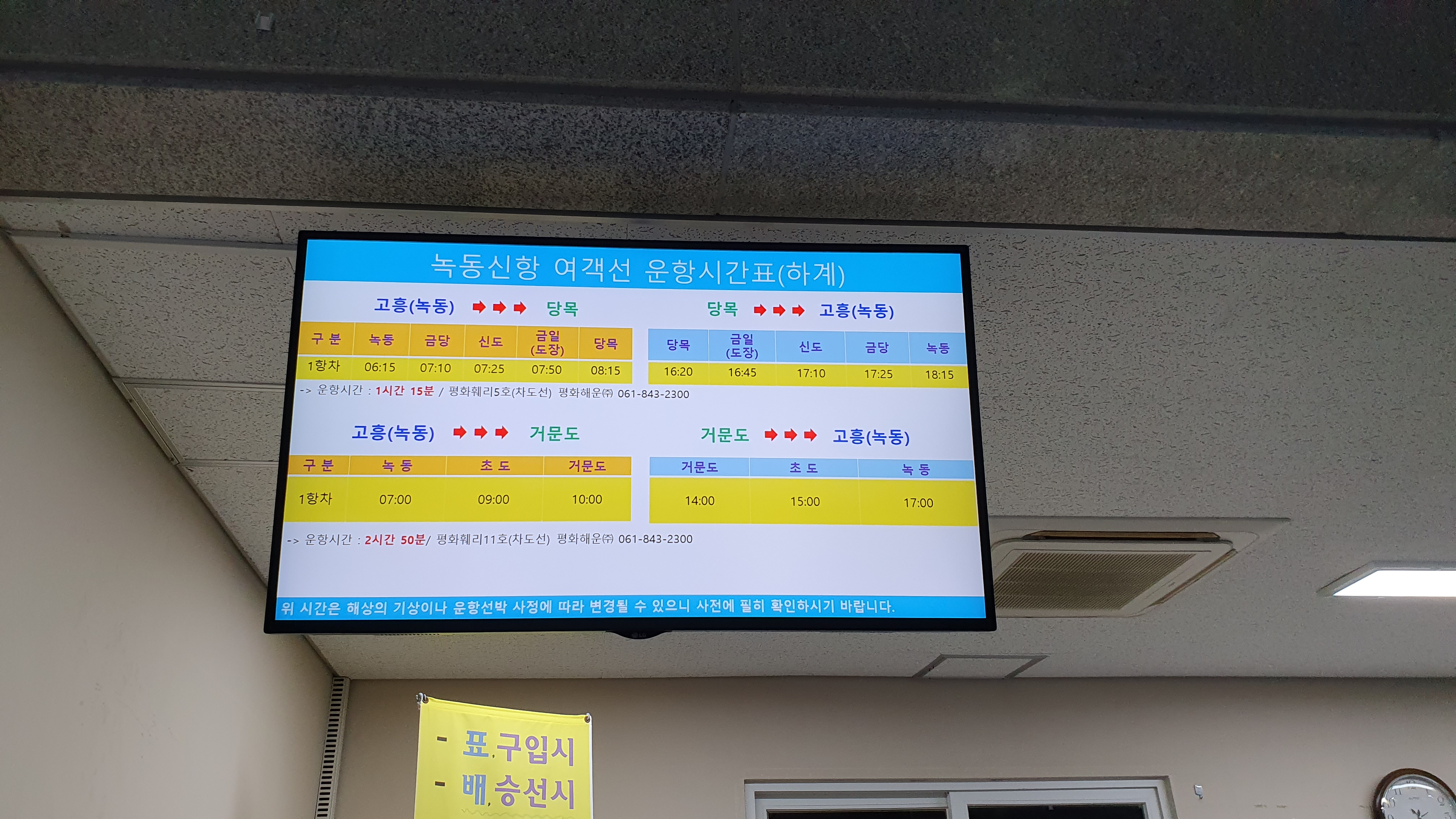 몇시에 출발하는지 자세히 살펴봐도 소용없습니다. 거문도가는 배는 오전 7시 (날씨가 좋을경우만) 밖에 없습니다.
