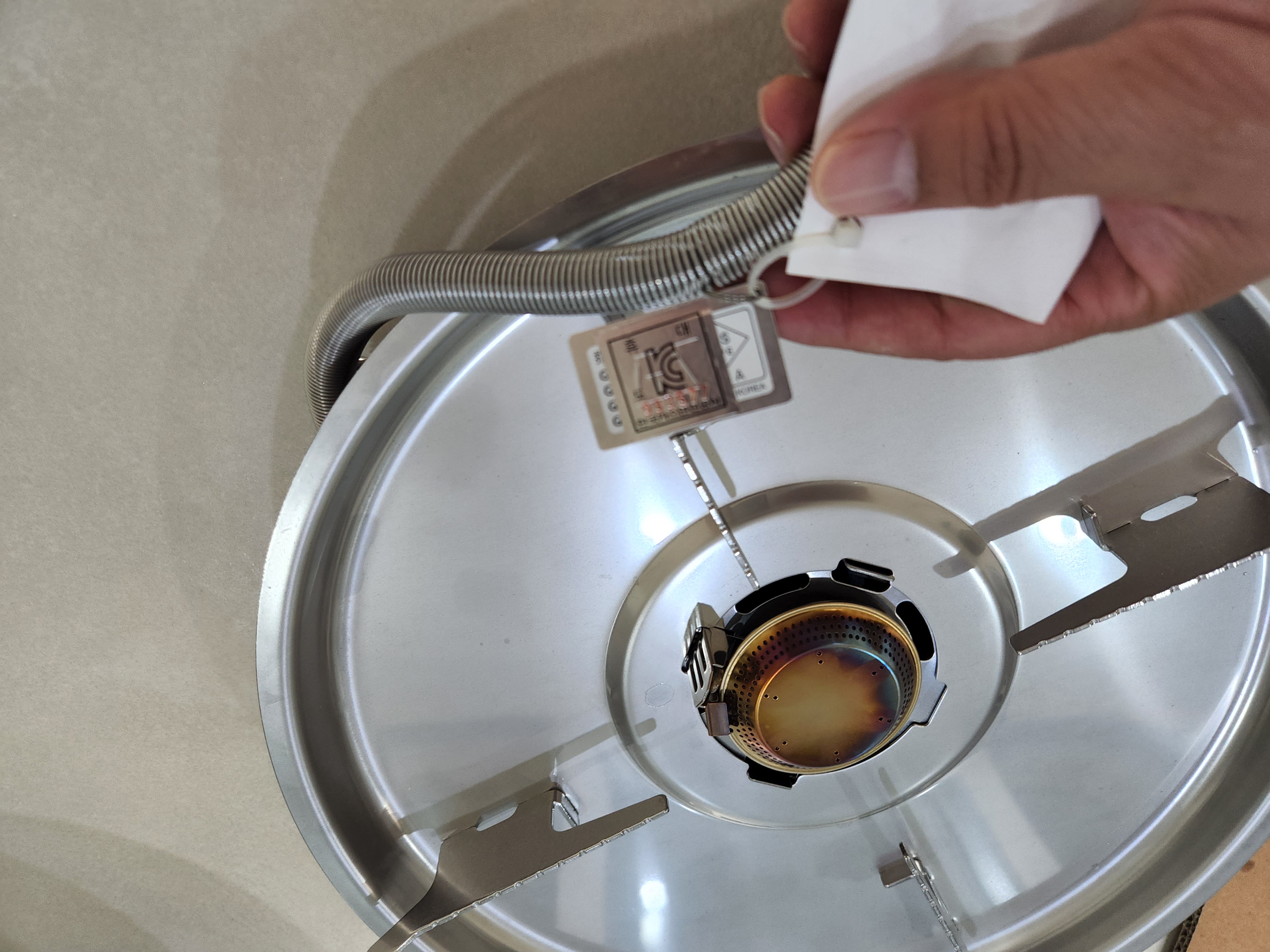 버너 안쪽은 이렇게 생겼다. 테스트 삼아 불을 한번 켜주었는데 바로 중고가 되고 말았다.