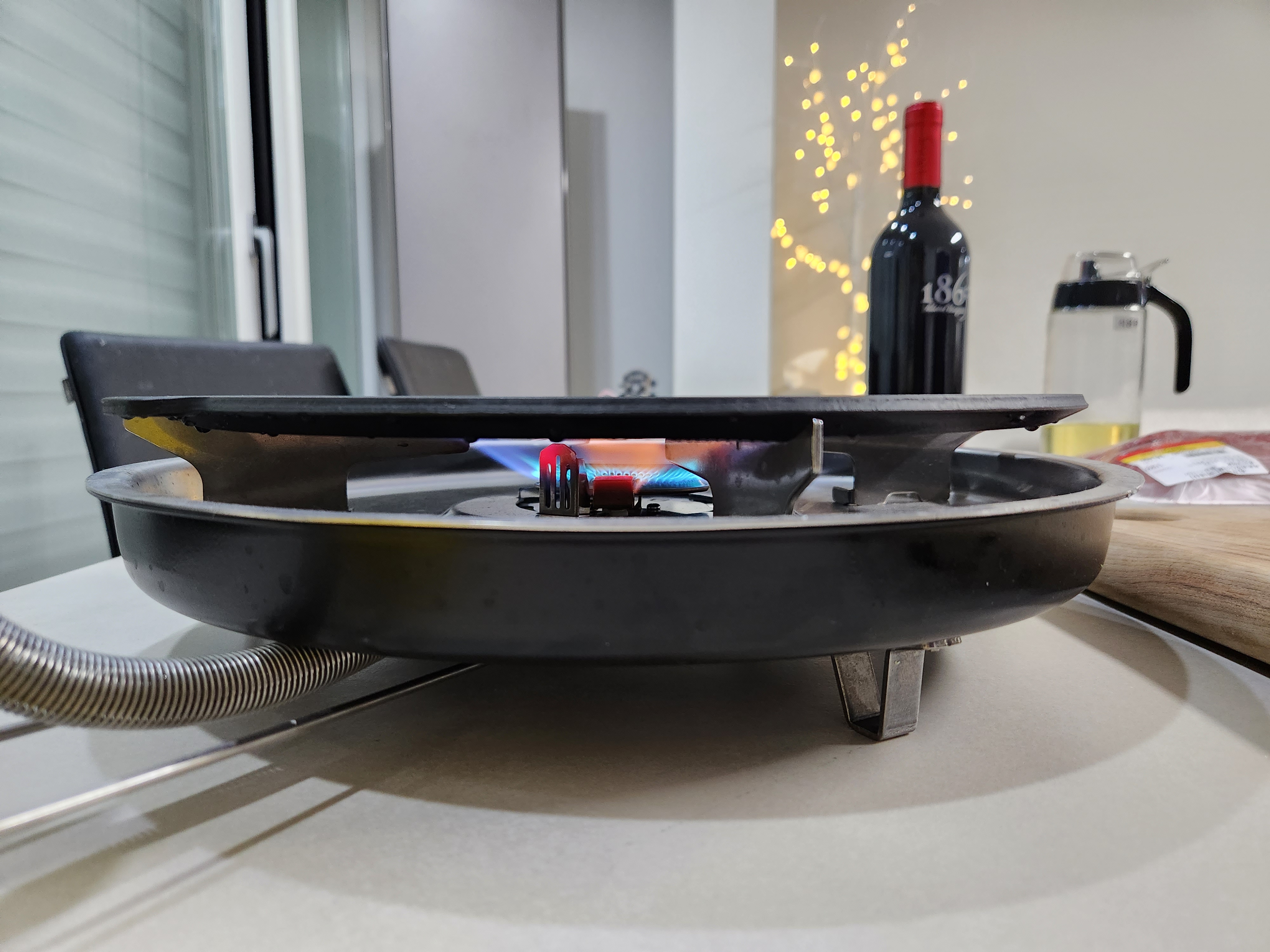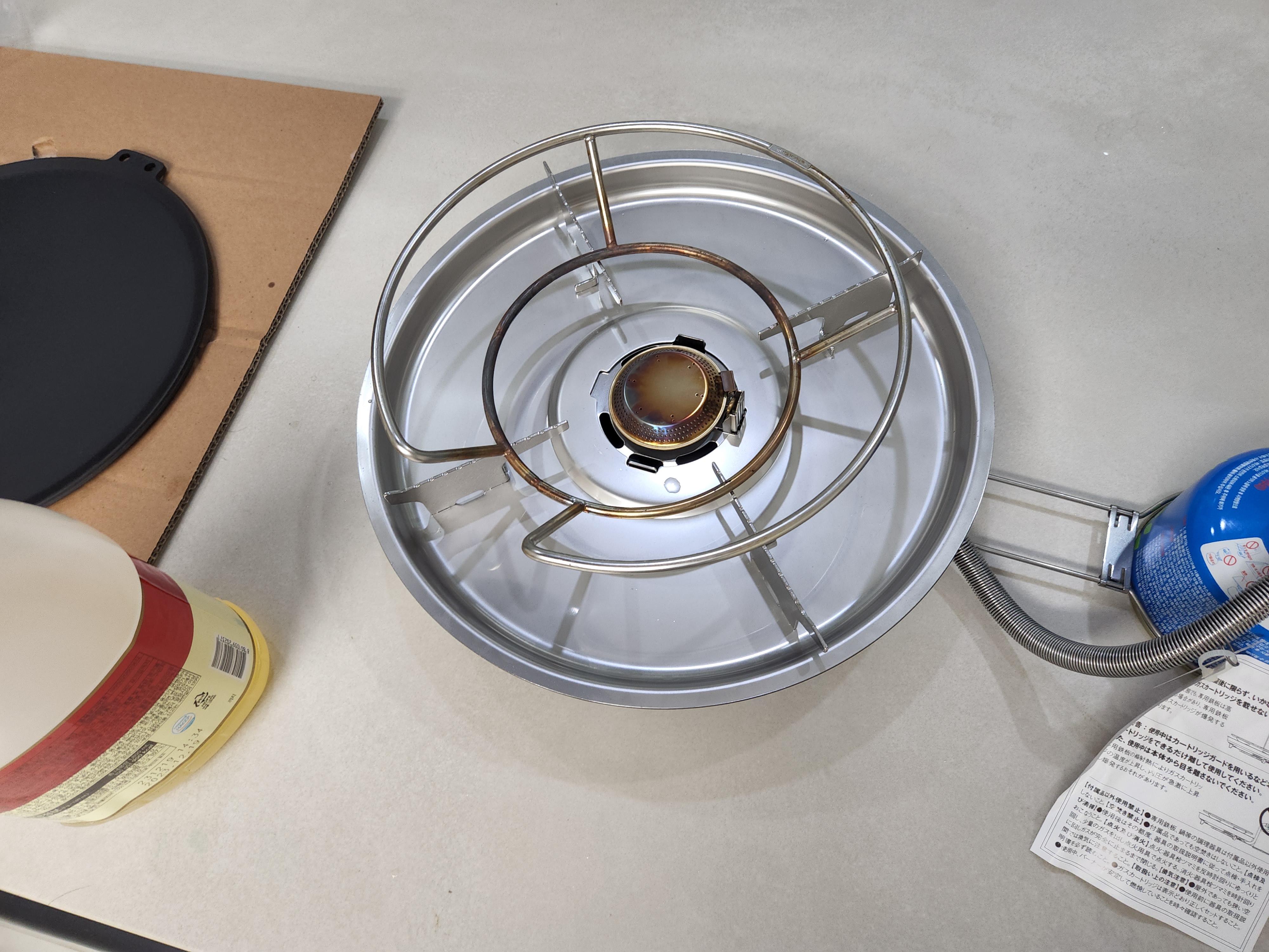 그래서 보관만하다가 철반버너라는것이 새로 출시되었다길래. "앗!! 저거라면 카엔냄비를 올릴수 있겠어.(강염버너보다 훨씬 싸잖아!!)" 라고 생각한 다음날 철판버너를 구매했다. 또한 철판까지 쓸수 있다니, 부담스러운 그리들 보다 집에서 사용하기에 유용하게 생겼다.