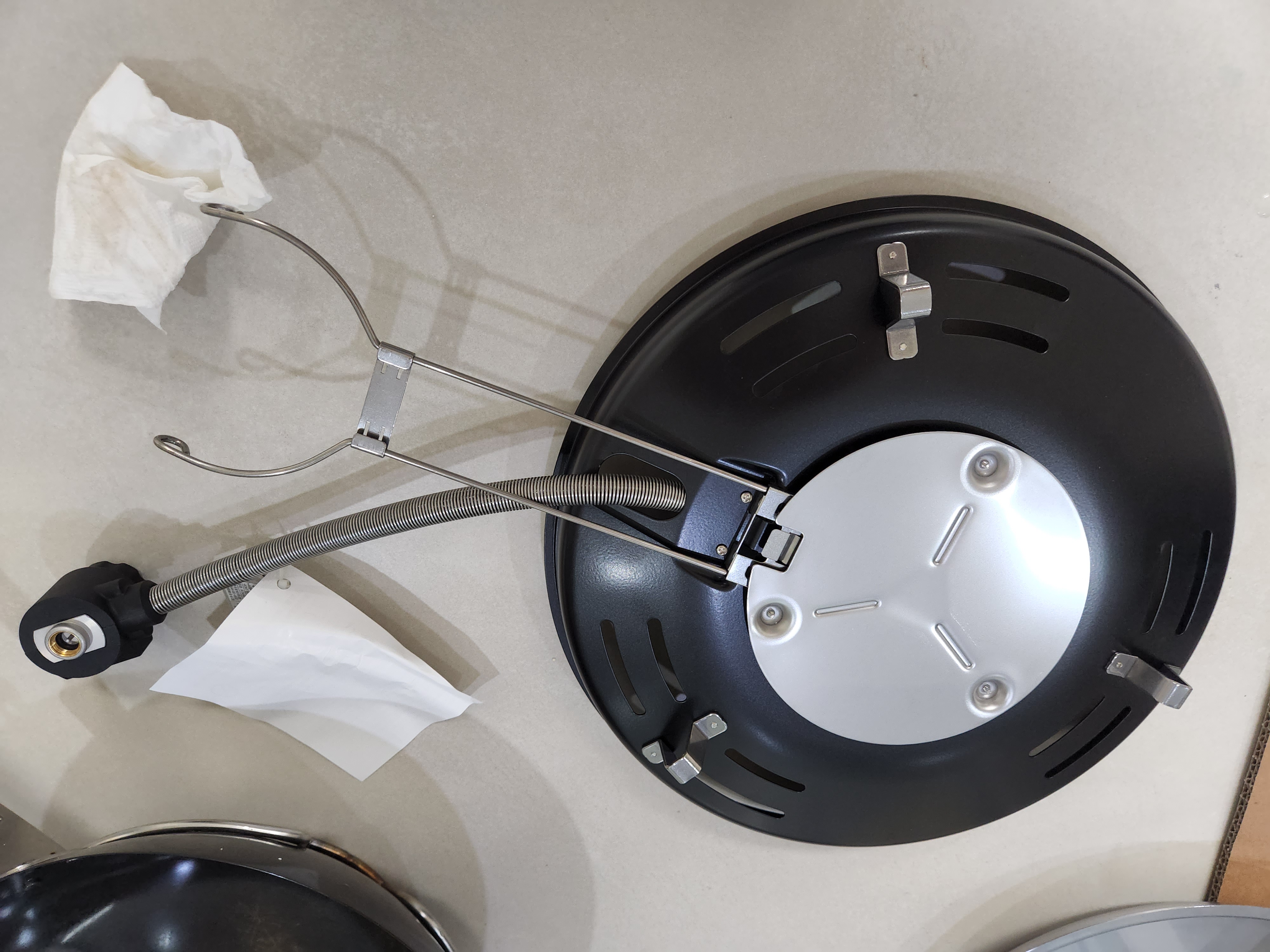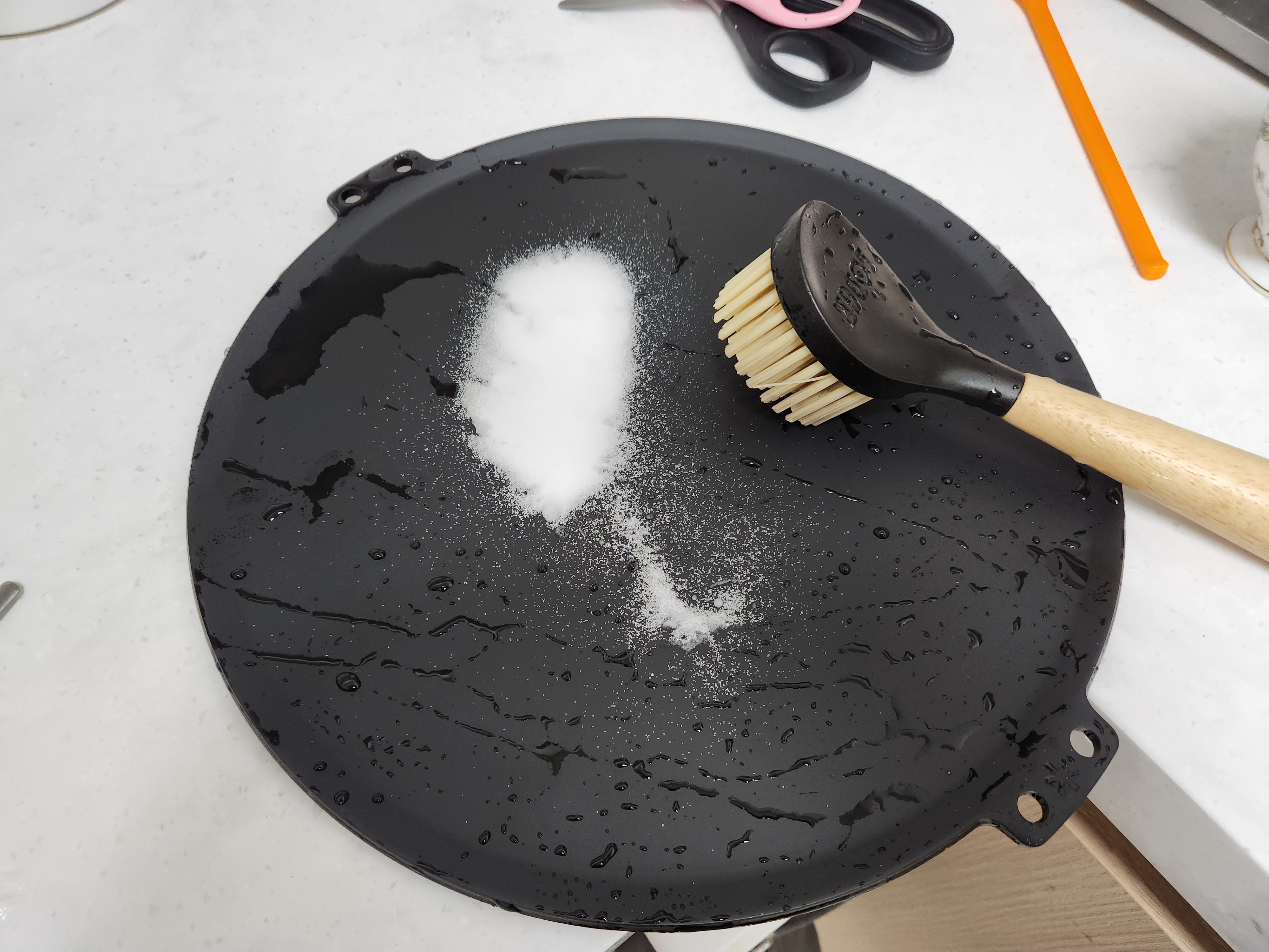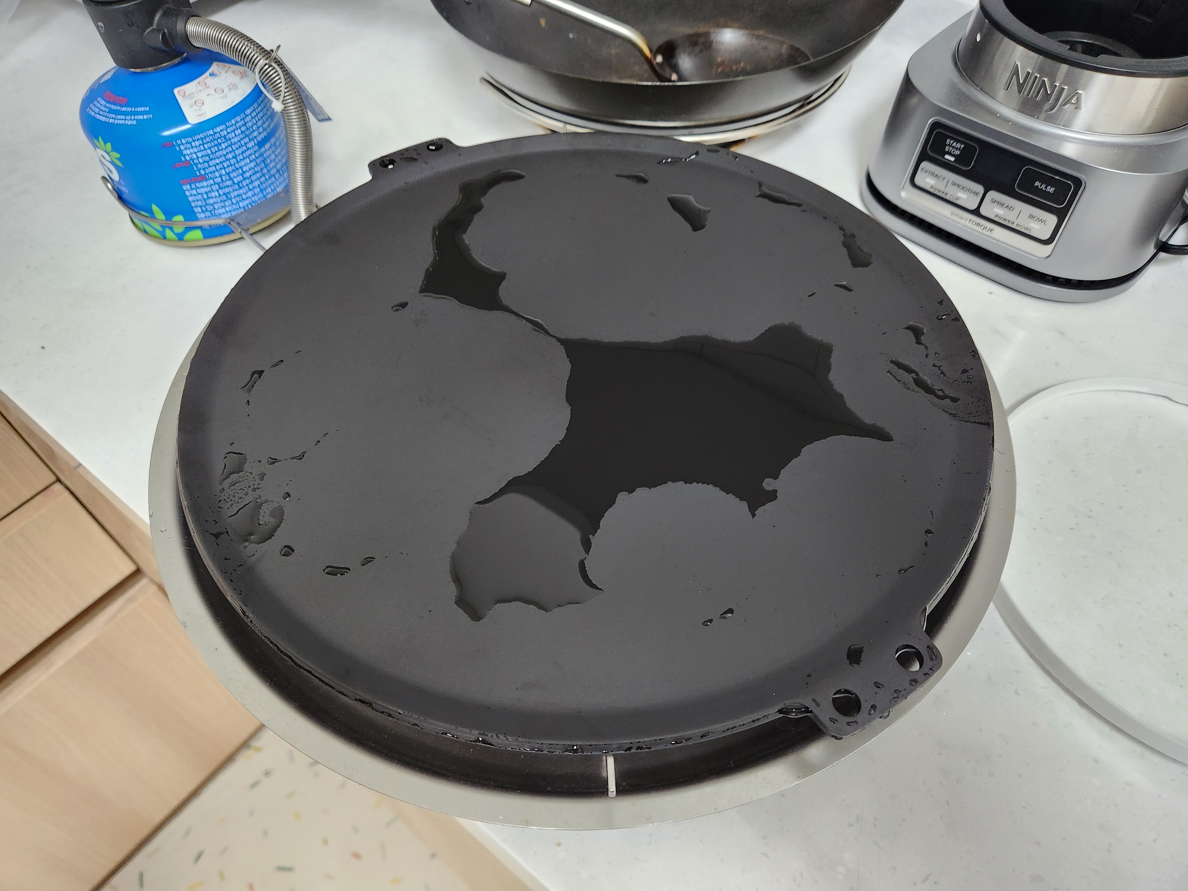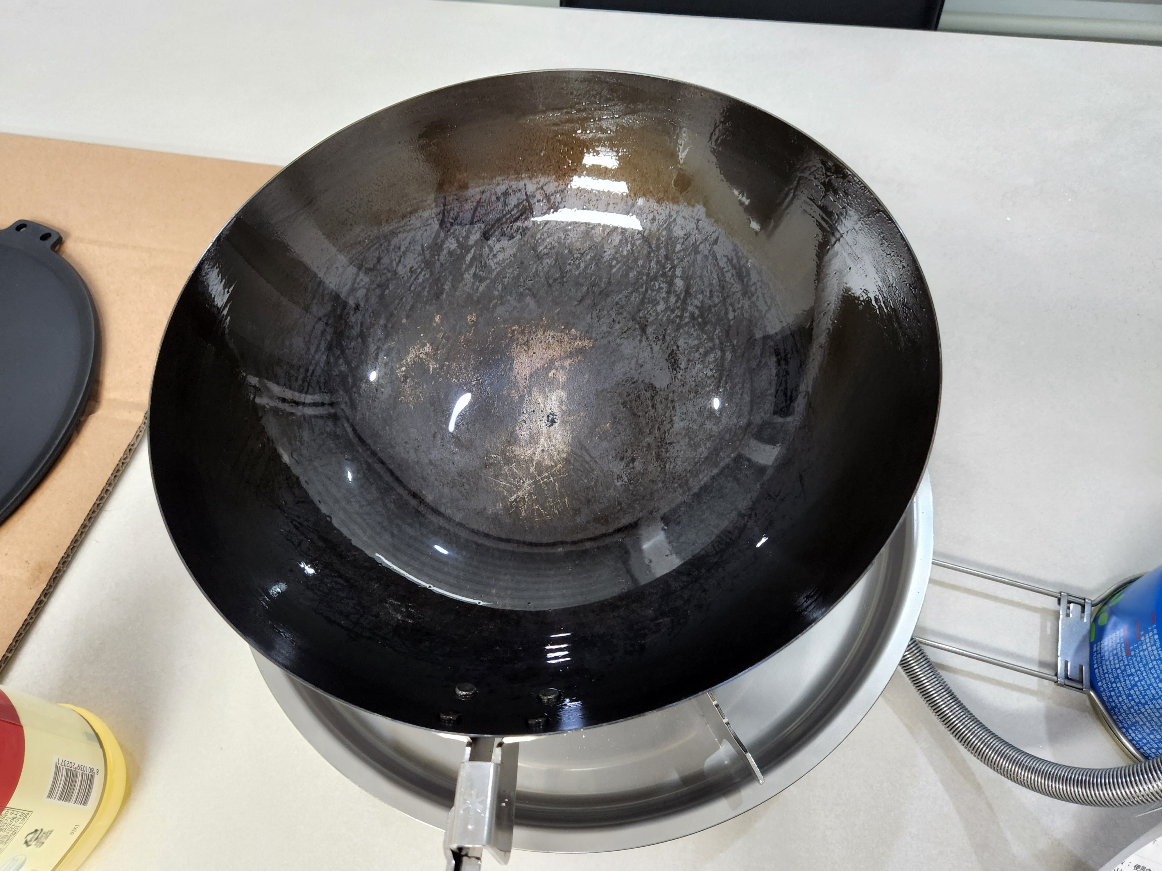 철판을 꺼낸 모습. 아직 시즈닝이 되지 않아서 회색을 띄고 있다.