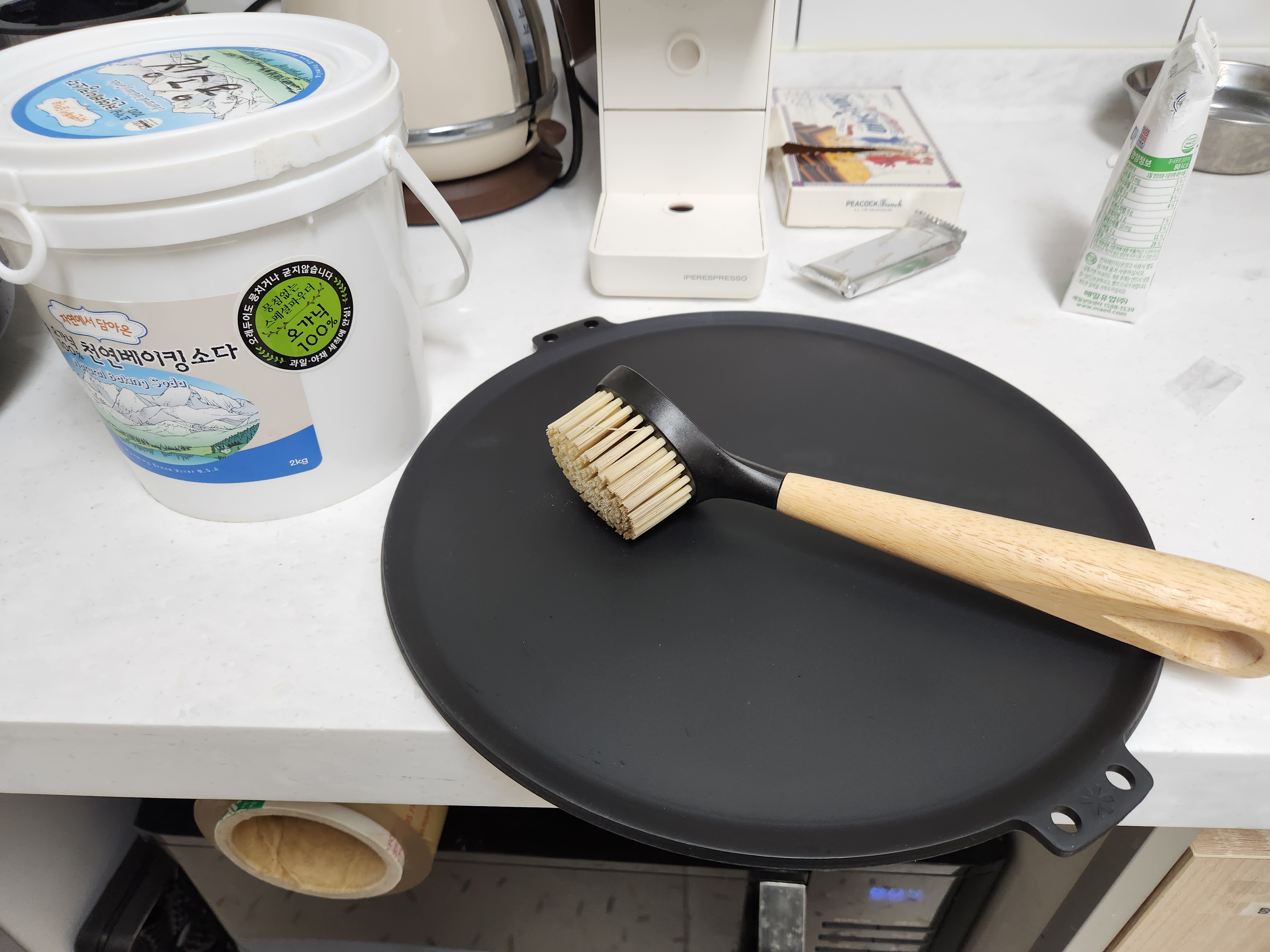 먼저 솔과 베이킹소다로 깨끗이 닦아주었다.