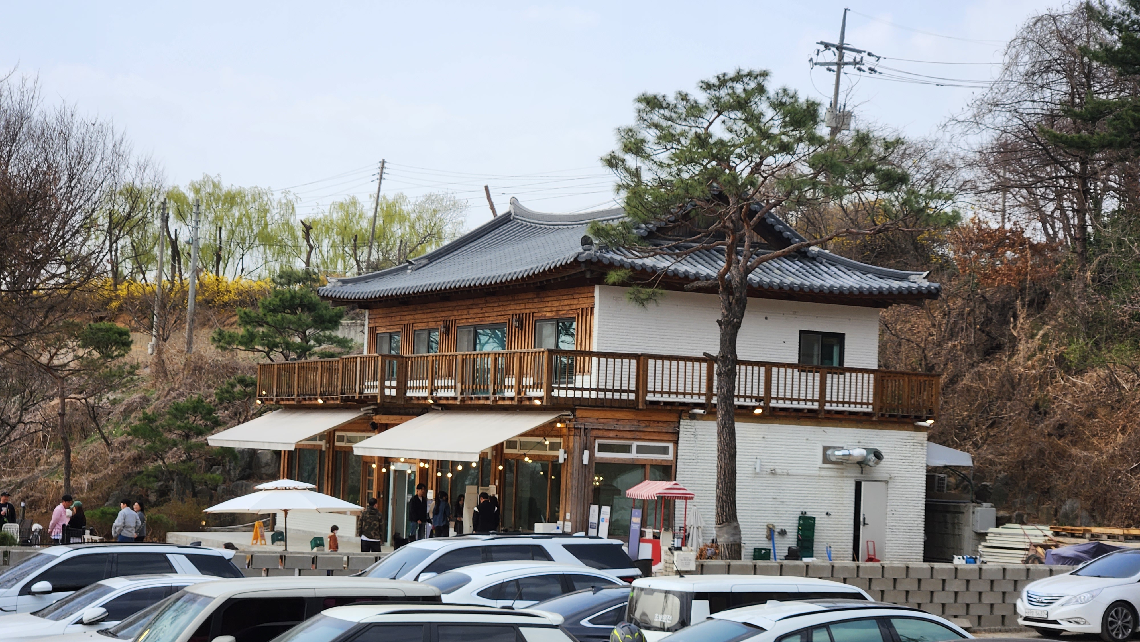 길을 잘못들었는지 좁은 시골길을 이리저리 헤메다가 자동차가 엄청나게 주차되어 있는 카페를 만났다.
