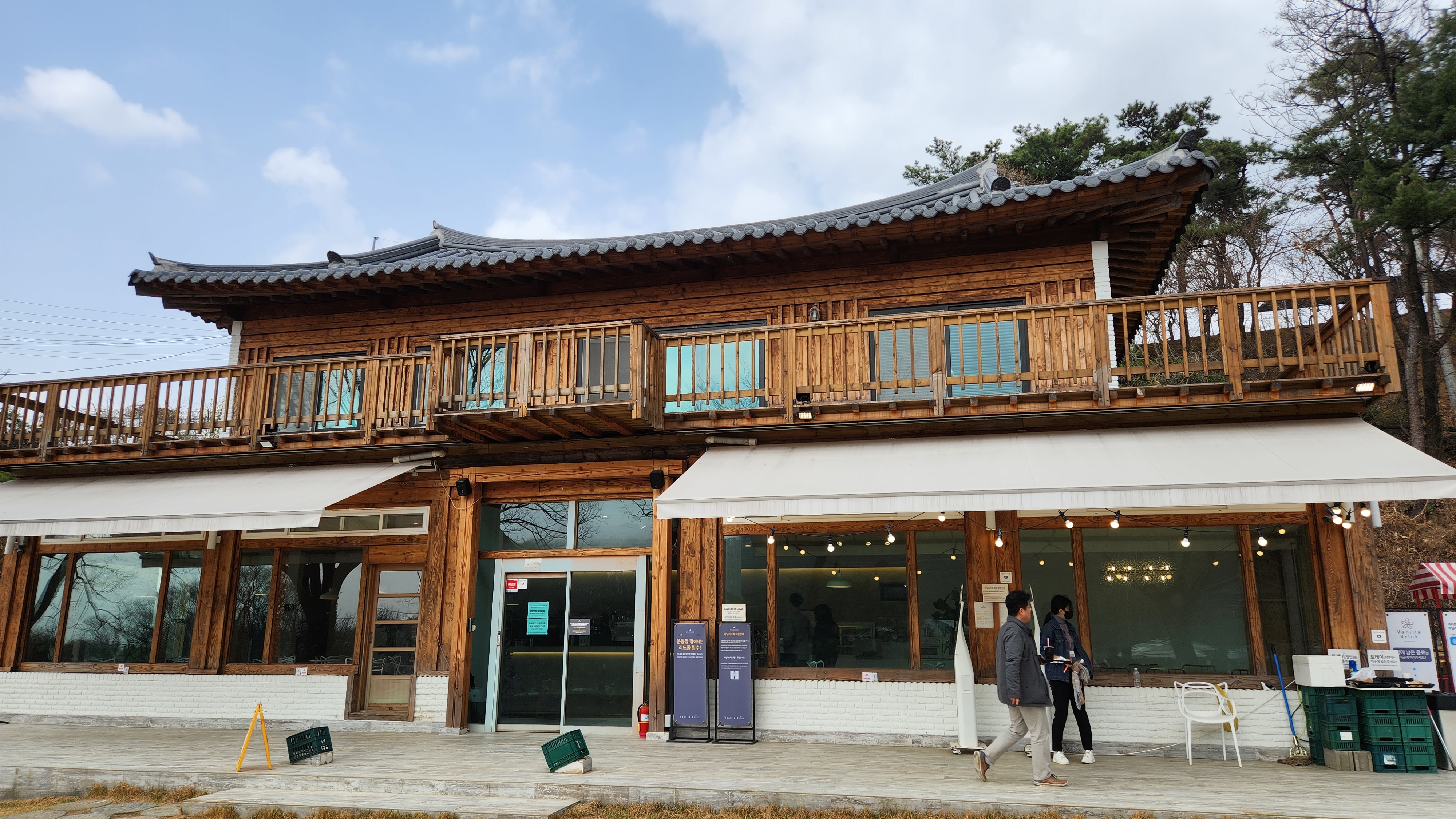 카페는 위 사진에 보이는 2층 건물이지만 안에는 주문하는 사람만 있고 텅텅 비어있다.