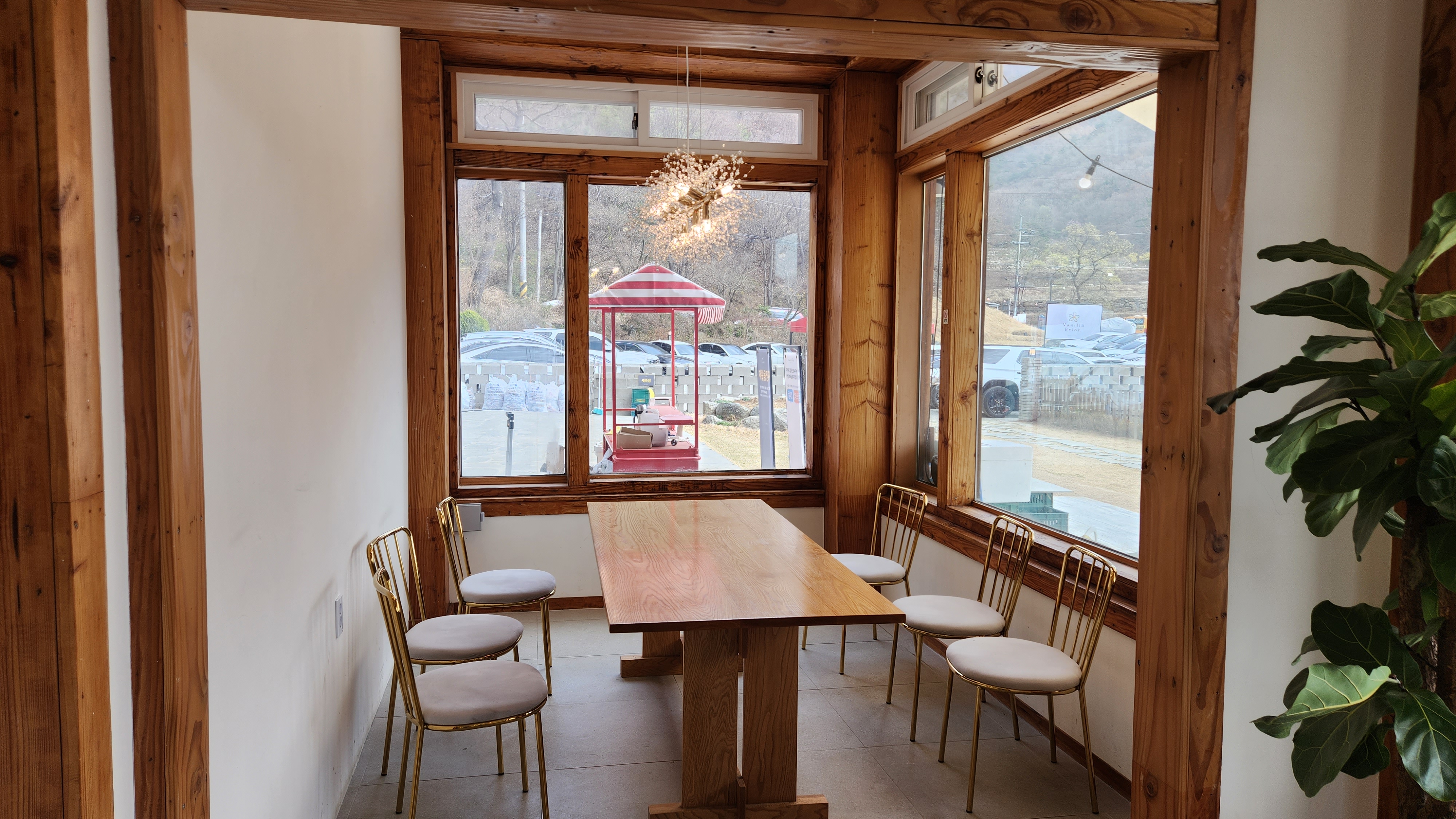 건물은 멋들어진 한옥 구조물인데 강아지는 카페 안으로 데리고 들어오지 못하게 되어 있으며, 밖에 키오스크가 있어서 밖에서 주문이 가능하도록 되어 있다. 정말 강아지를 좋아하는 사람이 만든 카페마냥 배려가 잘 되어있다.