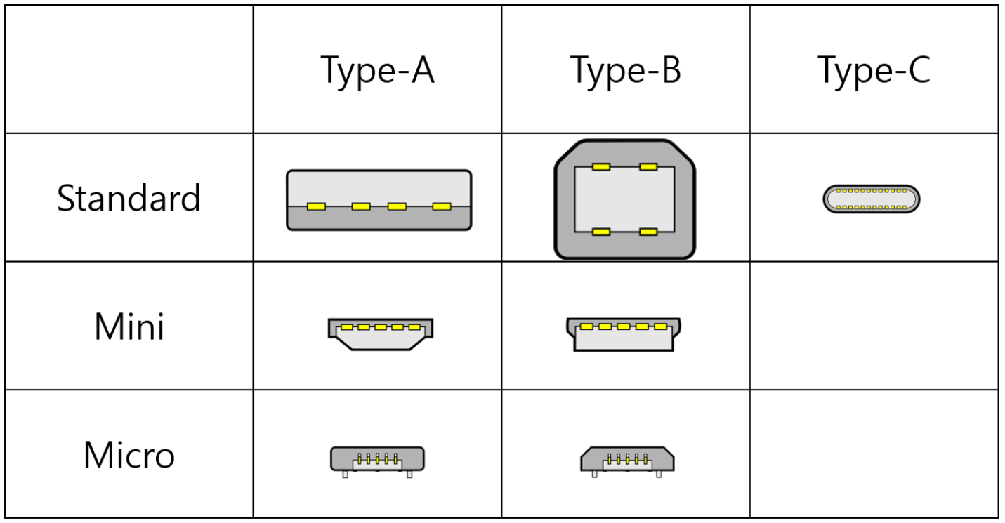 USB 는 타입과 버전으로 구분을 해야한다. 타입은 단자의 모양이며 버전은 기능추가 및 성능향상을 통해 올라가는 숫자로 이해하면 쉽다. 타입도 기능추가 및 성능향상으로 모양을 새로 개선하기 때문에 우리는 타입과 버전을 혼동하기 쉽다. 하지만 새로운 타입이라도 하위버전으로 만들게 되면 성능이 하위버전 수준으로 나오기때문에 잘 이해하기 바란다.